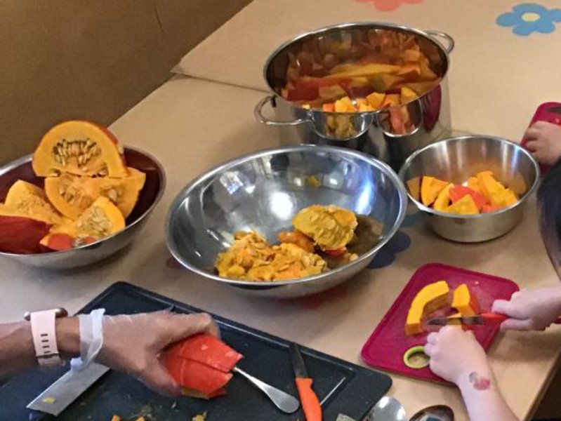 Sollte der eigene Anbau nicht möglich sein, kommen beispielswiese die OBST-Detektive des Kindergartens Kreuzkirche ins Spiel: „Was ist das? – Wo kommt das her? – Wie schmeckt das?“. All diesen Fragen gehen die Kinder gemeinsam mit den Fachkräften auf den Grund und entdecken etwa Tobinambur-Wurzeln, Granatäpfel oder Maracujas. „Einige Kinder probieren kleine Stücke auch bei einer Blindverkostung. Das ist sehr spannend für sie“, weiß Daniela Seifert-Schneider. Ebenso erlebnisorientiert beteiligt die DIE KITA-Kindertagesstätte Untersteinach die Kinder bei der Zubereitung verschiedener Gerichte. Vor kurzem haben die Mädchen und Jungen etwa ihr eigenes Pitabrot gebacken und eine leckere Kürbissuppe gekocht.