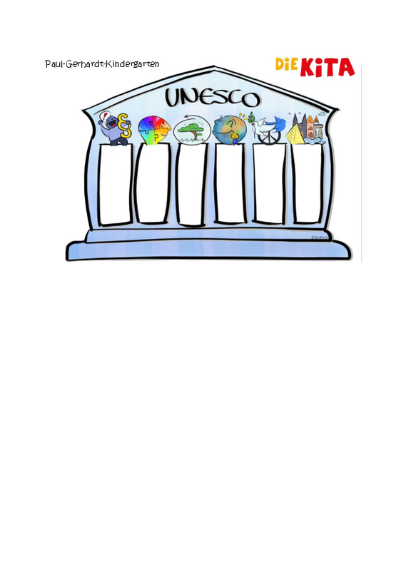Seit 2012 ist der DIE KITA Paul-Gerhardt-Kindergarten mitarbeitende UNESCO-Projekt-Einrichtung und damit Teil von einem weltweiten Netzwerk über 270 UNESCO-Projekt-Einrichtungen. Die Umsetzung der Ziele der UNESCO bereiten wir in kleinen didaktischen Einheiten für die KInder vor, beziehen die Kinder mit ihren eigenen Ideen und Vorstellungen mit ein und initiieren bereits in frühen Jahren die Idee einer gemeinsamen Verantwortung für unsere Mitwelt. Wir haben uns den Schwerpunkten Friedenserziehung mit unseren Kinderkursen zur konfliktfreien Kommunikation nach Marshall Rosenberg, Nachhaltige Bildung und verantwortlichen Umgang mit unseren Ressourcen sowie Demokratieerziehung und Weltkulturerbe bzw. "regionales Erbe" besonders gewidmet. Immer wieder erarbeiten wir in Projekten, möglichst kindgerecht und ganzheitlich, an diesen Zielen.